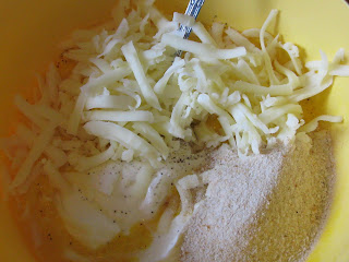 2. Bateti ouale cu smantana, adaugati 2 linguri de pesmet, 2/3 din cantitatea de cascaval rasa, sare si piper.