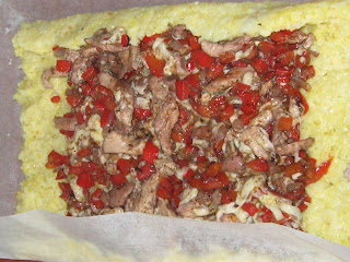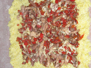 6. Intindeti compozitia peste orez si rulati ajutandu-va de foaia de copt.